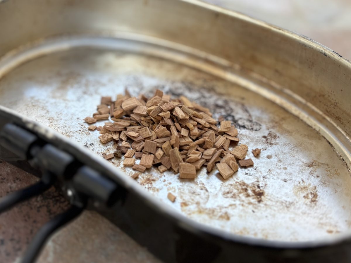 燻製に使うウッドチップは、最近では100均でも見かけるようになりました。サクラ、クルミ、リンゴなど、様々な種類があって、風味もそれによって違います。